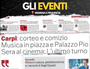 Ritrovo alle 9.30 in via Fassi; alle 10 partenza del corteo con la banda cittadina. Alle 10.30, in piazza Martiri, comizio con Maurizio Guidotto, coordinatore Cgil distretti Carpi e Area Nord, Andrea Sirianni, segreteria Cisl Emilia Centrale, e Carmine Ciccotti, Uil Modena. Alle 16, nel cortile d’Onore di Palazzo Pio, concerto di Primavera del Corpo Bandistico Città di Carpi; in caso di maltempo al circolo Loris Guerzoni, via Genova 1. Alle 21, al cinema Ariston di San Marino, proiezione del film “L’ultimo turno”, regia di Petra Biondina Volpe. Iniziative con il patrocinio di Comune di Carpi e Unione Terre d’Argine e il contributo di Abitcoop, Cmb e Cooperativa Bilanciai.