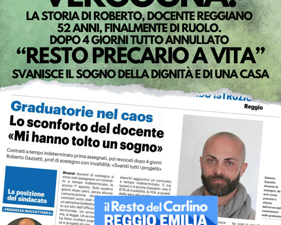 Il personale della scuola รจ umiliato, le graduatorie sono sbagliate e le scuole reggiane sono allo stremo.