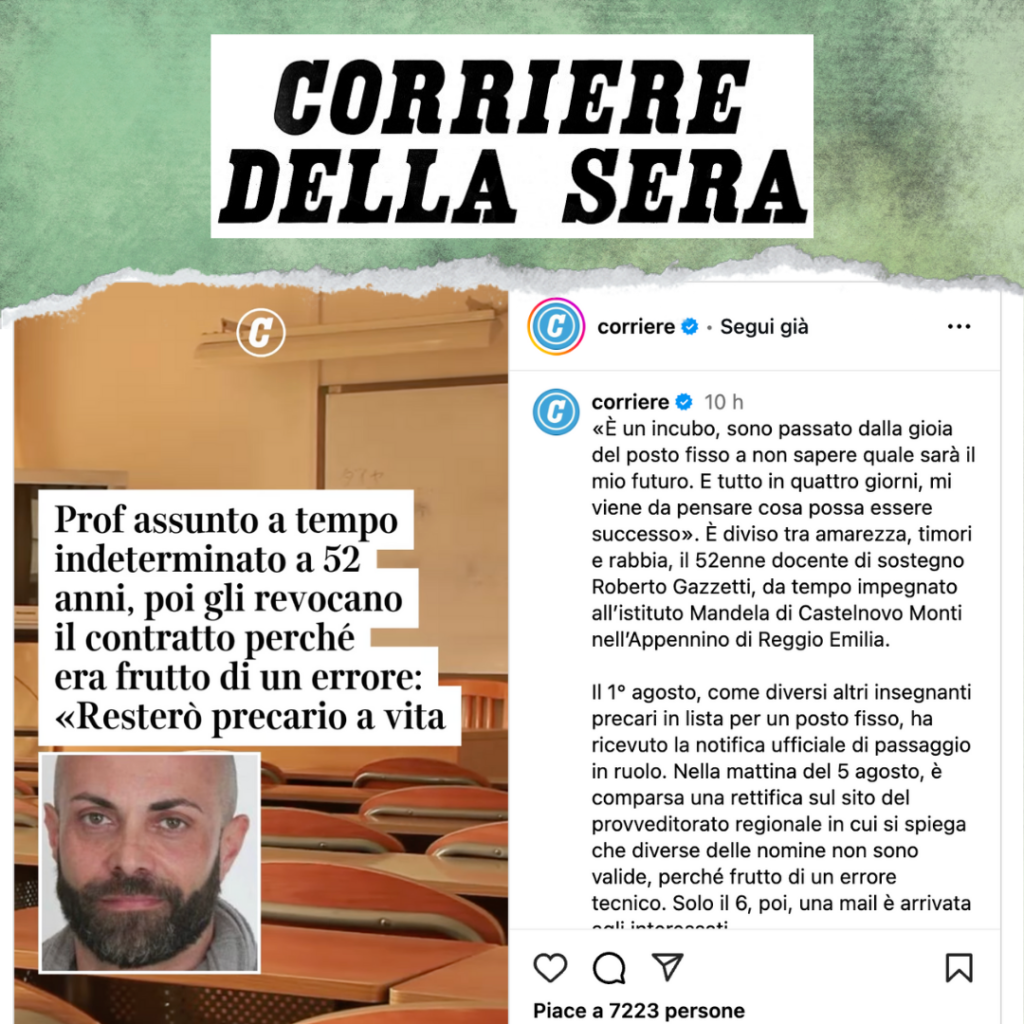 ๐๐ผ๐ป ๐๐ป ๐ฏ๐ผ๐น๐น๐ฒ๐๐๐ถ๐ป๐ผ ๐ผ๐ป๐น๐ถ๐ป๐ฒ ๐๐ถ ๐ฒฬ ๐ฎ๐ป๐ป๐๐น๐น๐ฎ๐๐ผ ๐๐ป ๐ฐ๐ผ๐ป๐๐ฟ๐ฎ๐๐๐ผ ๐ฑ๐ถ ๐น๐ฎ๐๐ผ๐ฟ๐ผ e, con esso, i progetti di vita di una persona. Vergogna! Eโ inaccettabile che docenti con tanti anni di servizio alle spalle vengano trattati come numeri su una schermata.