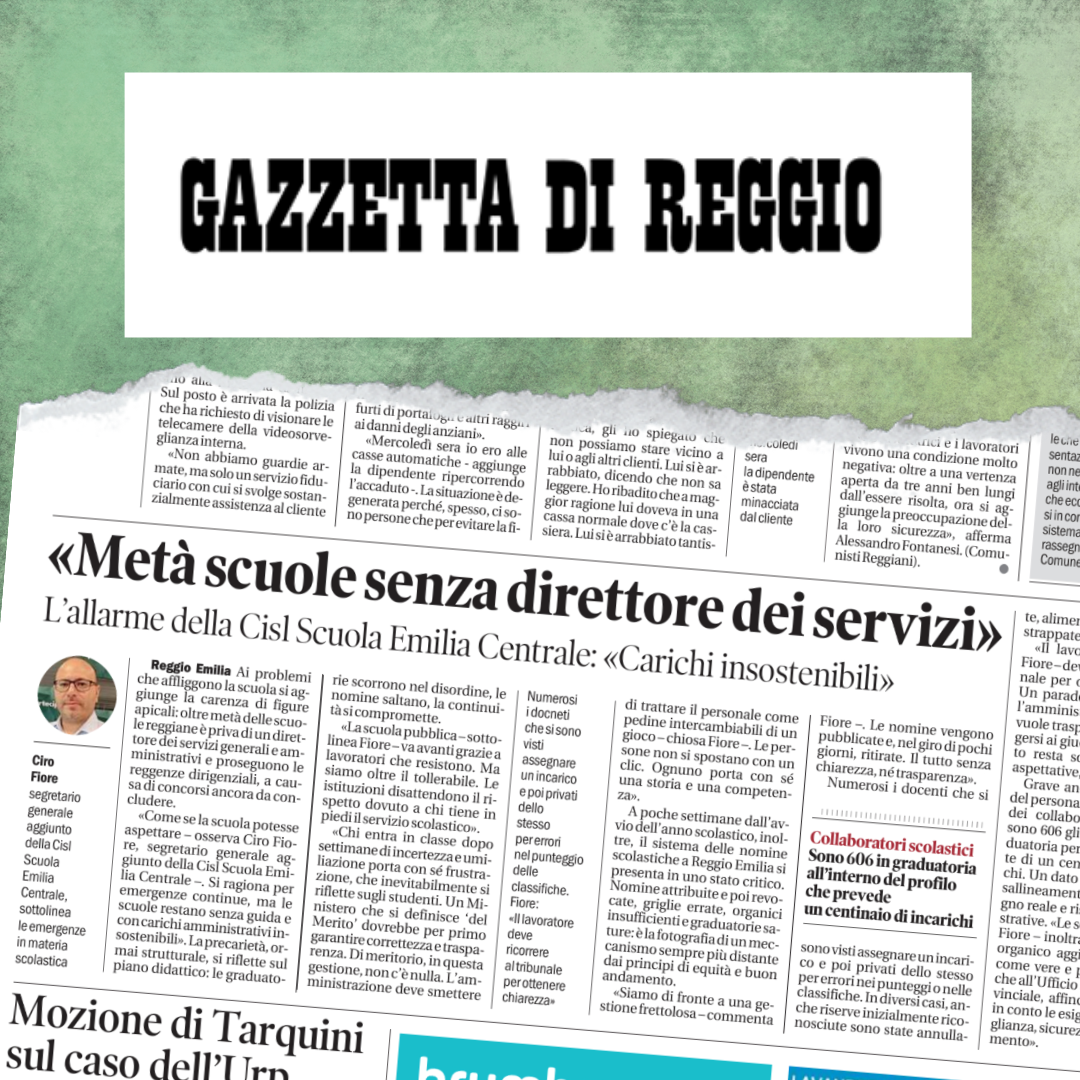 Si aggiunge la carenza di figure apicali: oltre metร delle scuole reggiane รจ priva di un Direttore dei Servizi Generali e Amministrativi e proseguono le reggenze dirigenziali, a causa di concorsi ancora da concludere.
